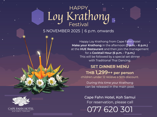 This will be followed by a special set dinner with Traditional Thai Dancing.